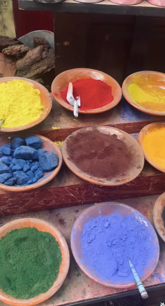 A collection that is currently expanding. After a few solo trips around Morocco and Egypt, Georgia brought back pigments bought from the souks specifically for this collection. Getting under the surface of the culture in North Africa brought an insight into how life is there. After hitching rides across the desert, being invited back to a local wedding, and feasting on the floors of family homes, this land, the Nile and the colours started to emerge in paintings.